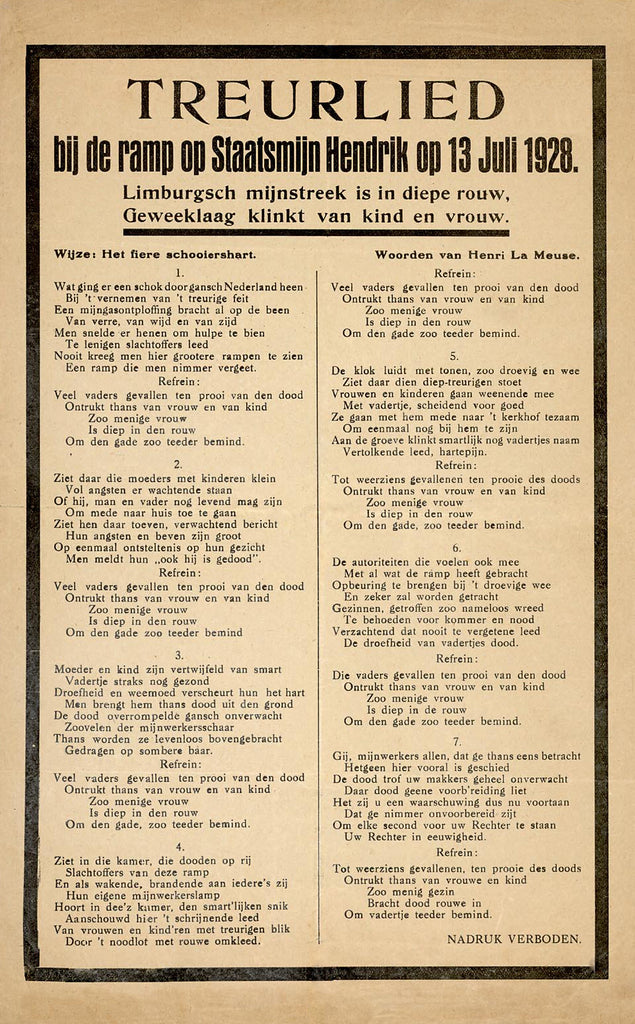- Replicas of original deceased miners's Prayer card, original Mourning song lyrics and Original Death announcement.